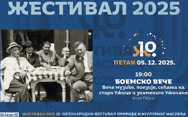 Večeras od 19 časova u klubu Gradskog kulturnog centra organizuje se „Boemsko veče“ – veče muzike, poezije i sećanja na staro Užice i znamenite Užičane.