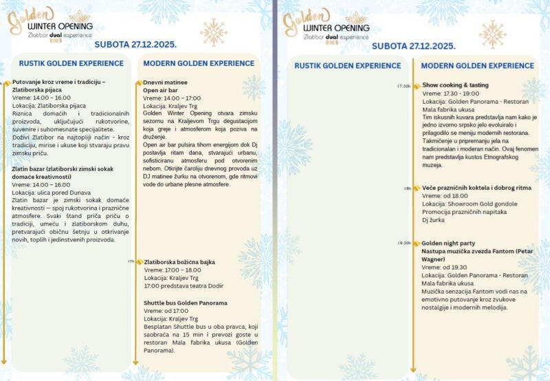 „Zlatibor sadržajnim manifestacionim programom spremno dočekuje novogodišnje i božićne praznike“, poručili su iz Turističke organizacije Zlatibor na zvaničnom otvaranju zimske sezone i manifestacije „Golden vinter opening“.