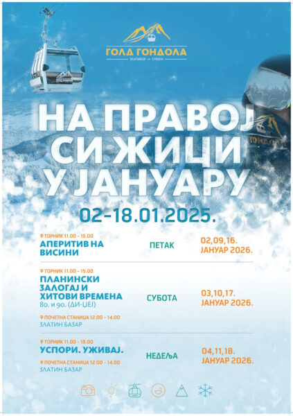 Za zimsku sezonu iz JP „Gold gondola“ najavljuju praznične događaje, tematske žurke na trasi godnole, gastro užitke, zimske igre, posebne aktivnosti za porodice i decu.