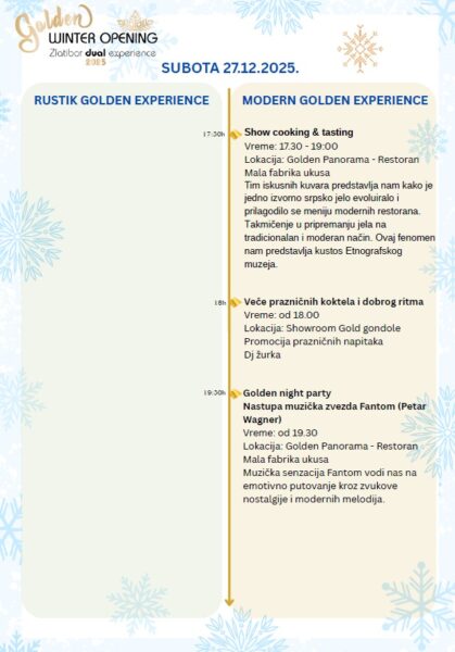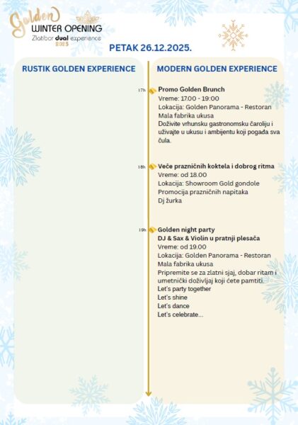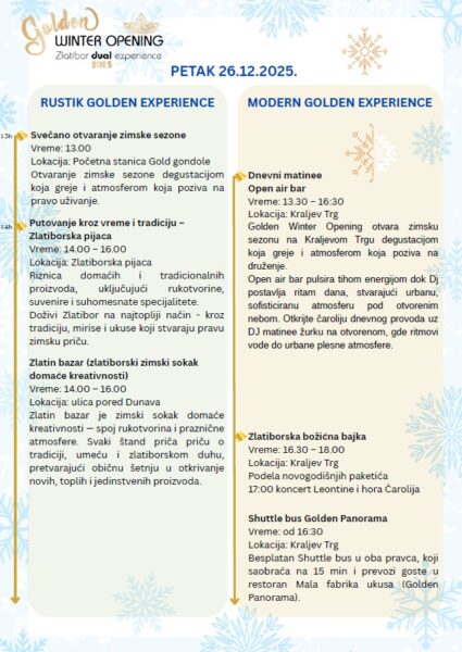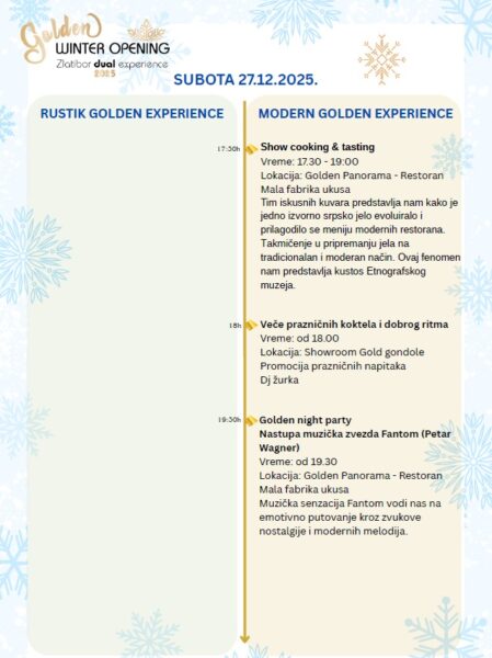 Program je sačinjen tako da Vam pruži iskustvo i rustičnog i modernog Zlatibora, naveli su iz TO Zlatibor i JP Gold gondole